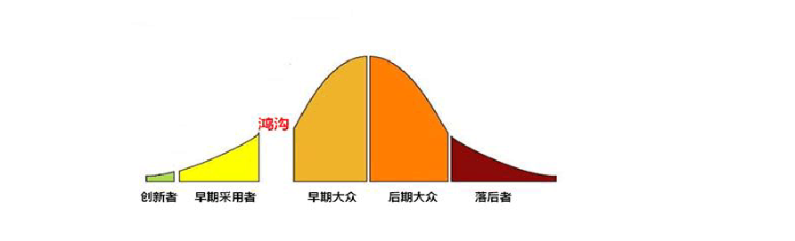 “鴻溝理論”核心觀點是,高科技產品在市場營銷過程中遭遇的最大障礙:高科技企業的早期市場(第一個市場)和主流市場(第二個市場)之(zhi)間(jian)存(cun)在(zai)著(zhe)一(yi)條(tiao)巨(ju)大(da)的(de)鴻(hong)溝(gou),能(neng)否(fou)順(shun)利(li)跨(kua)越(yue)鴻(hong)溝(gou)並(bing)進(jin)入(ru)主(zhu)流(liu)市(shi)場(chang),成(cheng)功(gong)贏(ying)得(de)實(shi)用(yong)者(zhe)的(de)支(zhi)持(chi),就(jiu)決(jue)定(ding)了(le)一(yi)項(xiang)高(gao)科(ke)技(ji)產(chan)品(pin)的(de)成(cheng)敗(bai)。其(qi)中(zhong)第(di)一(yi)個(ge)市(shi)場(chang)指(zhi)的(de)是(shi)由(you)早(zao)期(qi)采(cai)用(yong)者(zhe)和(he)內(nei)行(xing)人(ren)士(shi)所(suo)主(zhu)宰(zai)的(de)早(zao)期(qi)市(shi)場(chang),這(zhe)些(xie)消(xiao)費(fei)者(zhe)能(neng)夠(gou)迅(xun)速(su)地(di)接(jie)受(shou)新(xin)技(ji)術(shu)變(bian)革(ge)所(suo)具(ju)有(you)的(de)特(te)性(xing)和(he)優(you)勢(shi);diergeshichangzezhideshizhuliushichang,youchuzaoqicaiyongzheheneixingrenshizhiwaidesuoyouxiaofeizhezucheng,tamenjixiangtiyanxinjishudailaidehaochu,youbuyuanyijingshoucidailaideyixielingrenbukuaidexijie。danbuxingdeshi,zhelianggeshichangzhijiandeguoduqueshichongmankanke。