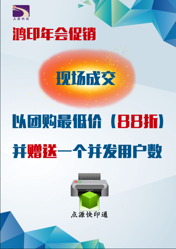 點源科技助力鴻印《超級店長年度盛典2018暨數碼印刷行業年會》,凡是大會現場成交購買點源快印通軟件的,按團購最低價一率88折並贈送一個並發用戶。