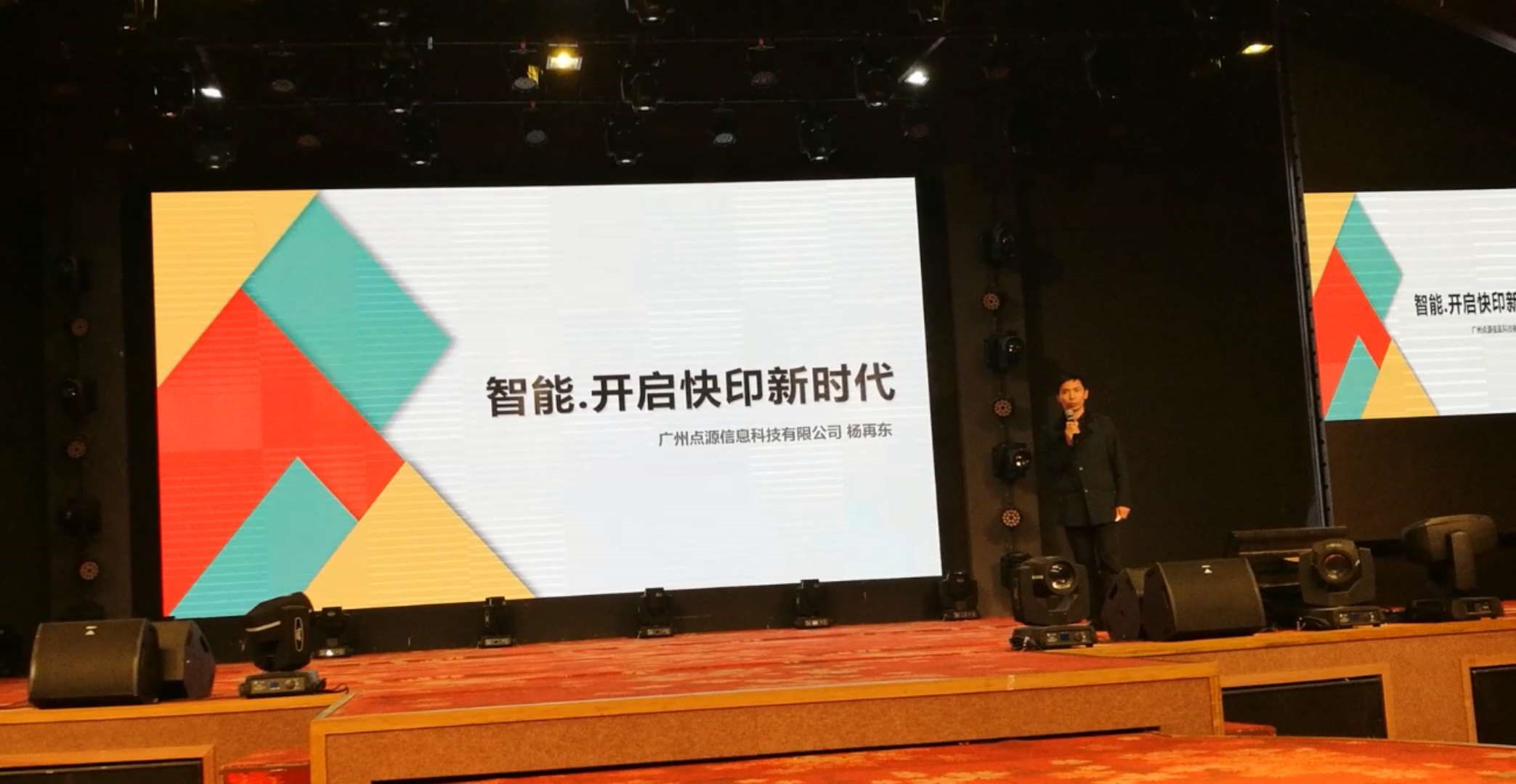 2017年12月16-17日,在杭州隆重召開了“超級店長年度盛典2018暨數碼印刷行業年會”,來自全國700多名數碼印刷行業的達人參加了此次盛會,再次引起大會轟動的是演講嘉賓廣州點源信息科技有限公司技術總監楊再東主講的“智能.開啟快印新時代”主題報告,短短20分鍾的演講詮釋了點源快印通軟件是如何通過智能“機器人”完成快印企業自定義各種印前處理業務單元,讓現場參會人員真正感受到智能快印新時代到來!