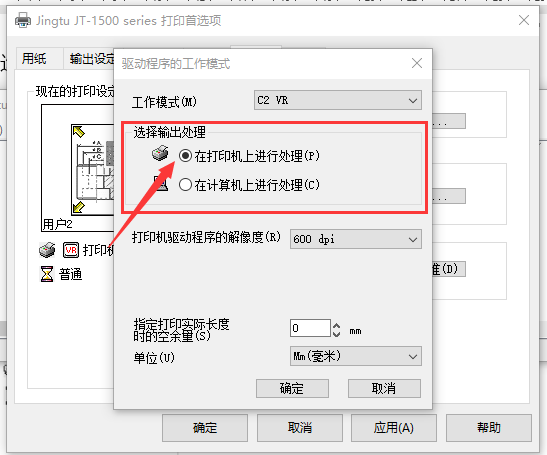 將選擇輸出處理,設置為在打印機上進行處理。