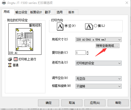 c. 回【用紙】選項卡,點擊【特殊定做用紙】: