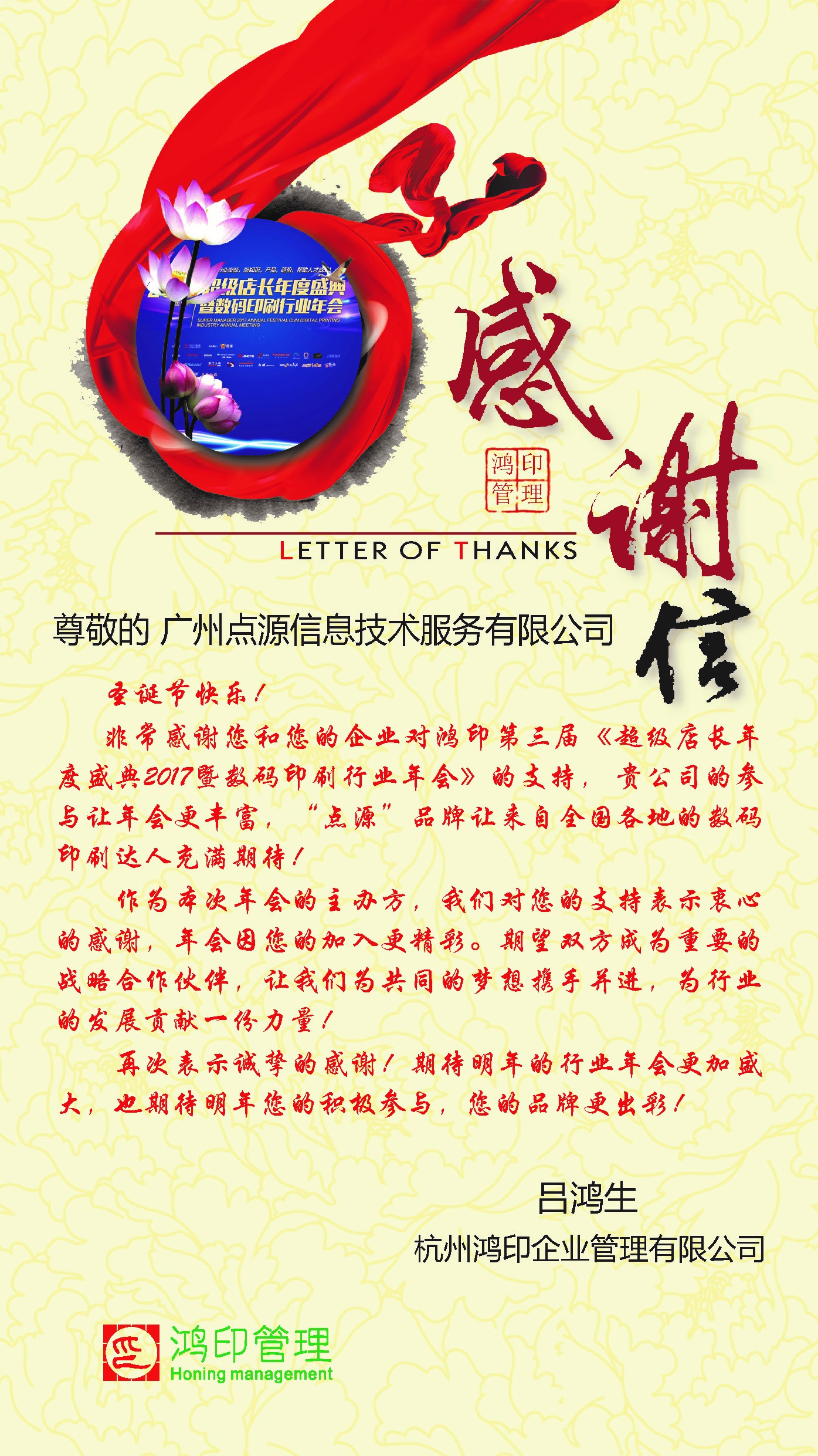 圖4杭州峰會成功閉幕後,主辦方給點源公司感謝信