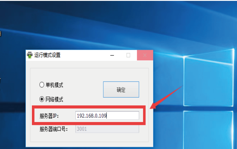 6、不是作為服務器的其他電腦安裝好軟件打開軟件提示,選擇網絡模式,輸入連接加密狗作為服務器的那台電腦IP地址即可。見圖6