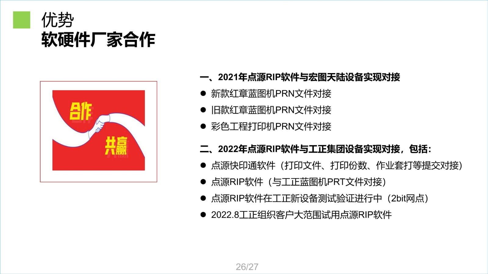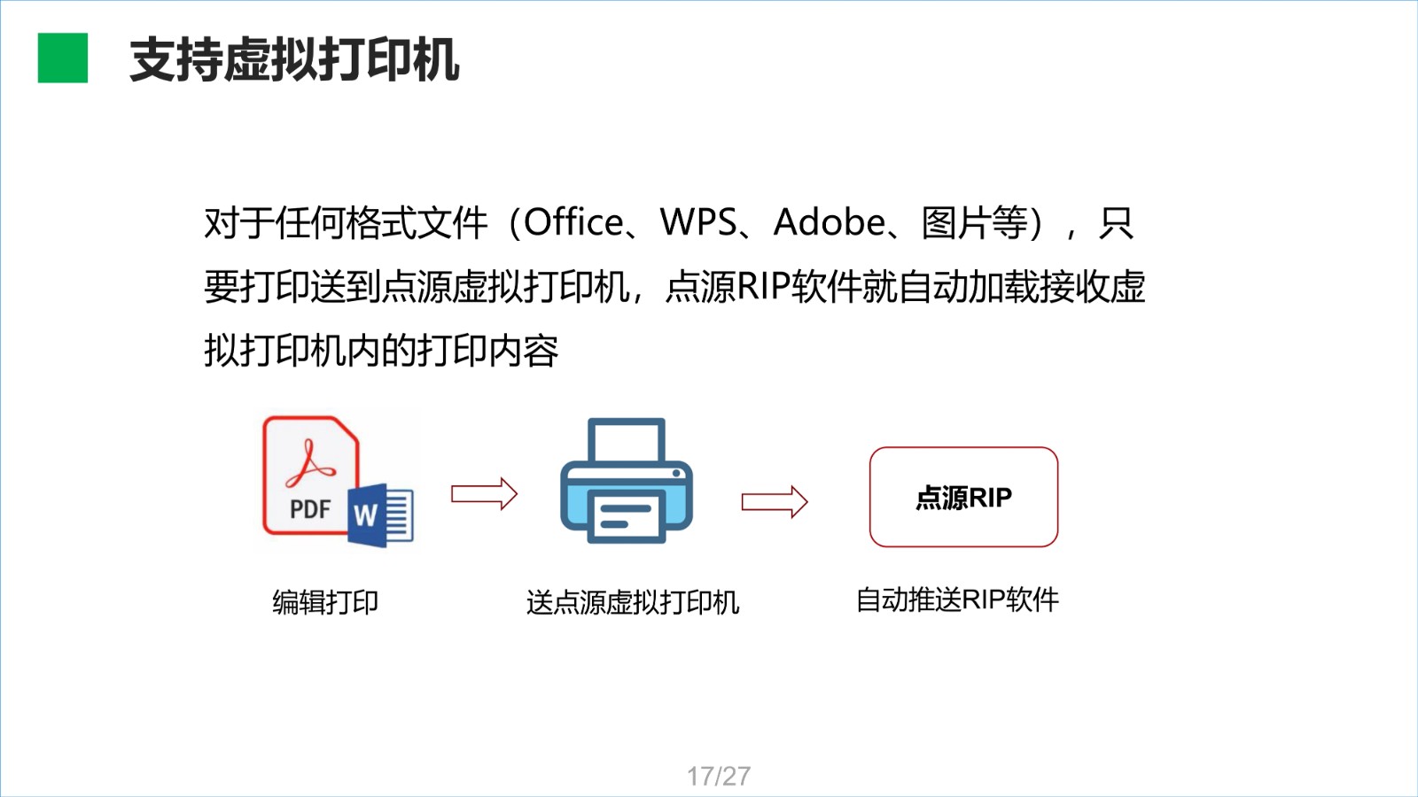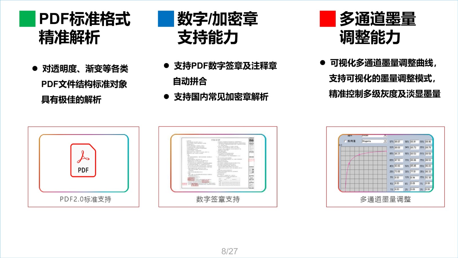 點源RIP軟件是一款集印前處理與圖像光柵處理一體化軟件,RIP通過點源核心算法,能智能提取圖麵所有紅章,並直接將PDF圖紙解析處理成打印機能夠識別的網點數據,最終生成相應的板卡打印控製PRN文(wen)件(jian)。該(gai)軟(ruan)件(jian)已(yi)經(jing)過(guo)客(ke)戶(hu)應(ying)用(yong)驗(yan)證(zheng),與(yu)國(guo)內(nei)行(xing)業(ye)同(tong)類(lei)產(chan)品(pin)比(bi)較(jiao),在(zai)處(chu)理(li)速(su)度(du)及(ji)圖(tu)章(zhang)處(chu)理(li)方(fang)麵(mian)具(ju)備(bei)領(ling)先(xian)優(you)勢(shi),在(zai)輸(shu)出(chu)質(zhi)量(liang)上(shang)與(yu)同(tong)類(lei)產(chan)品(pin)相(xiang)當(dang)。